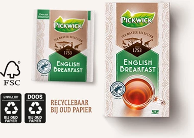 O Pickwick Tea Master Selection é composto por chá certificado. A embalagem é produzida de forma responsável e é facilmente reciclada após a utilização. A saqueta de chá também não contém plástico, pelo que é compostável.